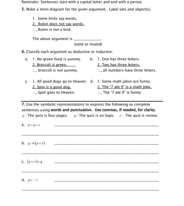 Solved 5 Make A Venn Diagram For The Given Argument Label Chegg Com